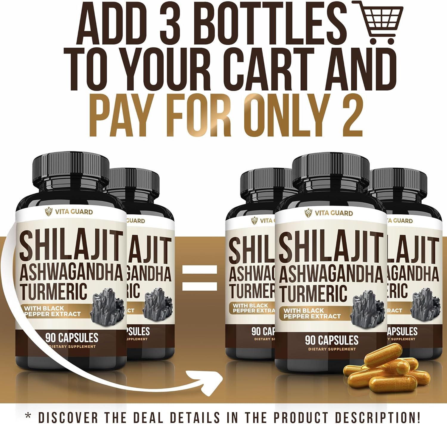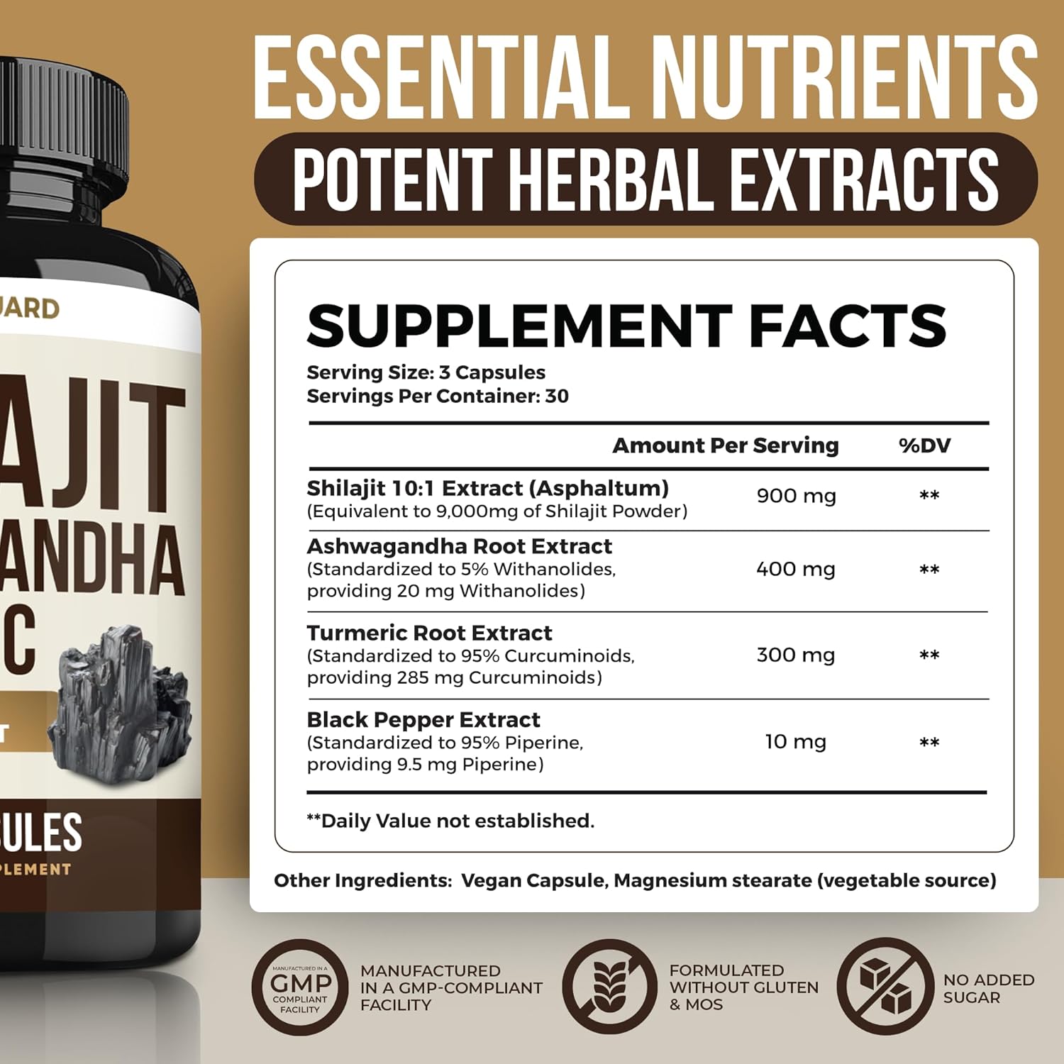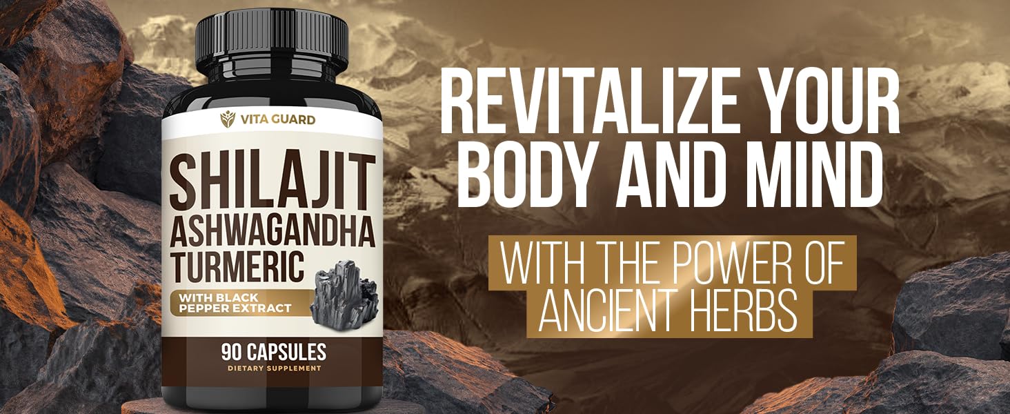 Himalayan Shilajit + Ashwagandha & Turmeric - 1610mg High Potency | Vegan Capsules with Fulvic Acid, 95% Curcuminoids & Black Pepper | Joint, Mood & Immune Support | 90 Count