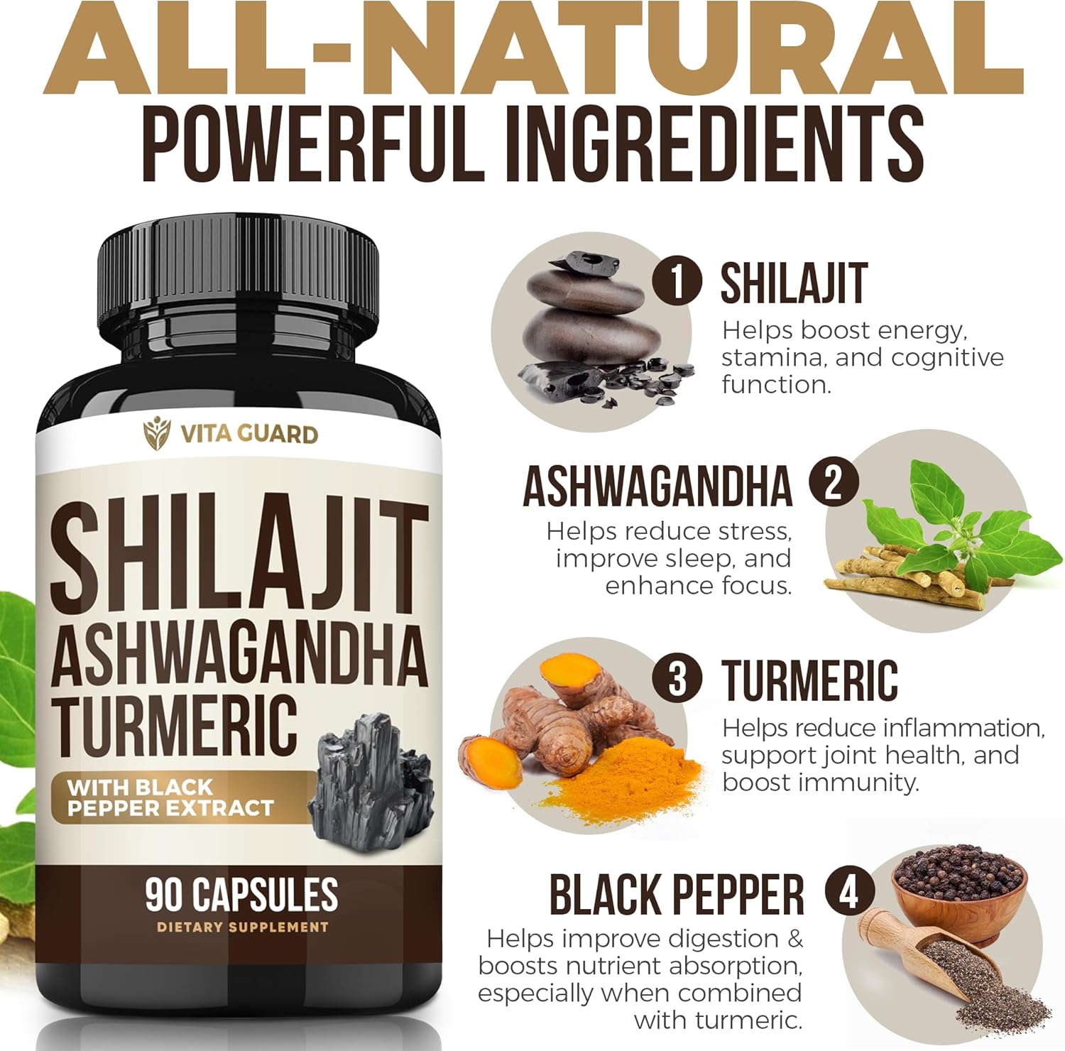 This potent blend of Himalayan Shilajit, Turmeric Curcumin, and Ashwagandha delivers 1610mg per serving to naturally boost energy, enhance mood, and strengthen your immune system. Third-party tested for quality and purity.