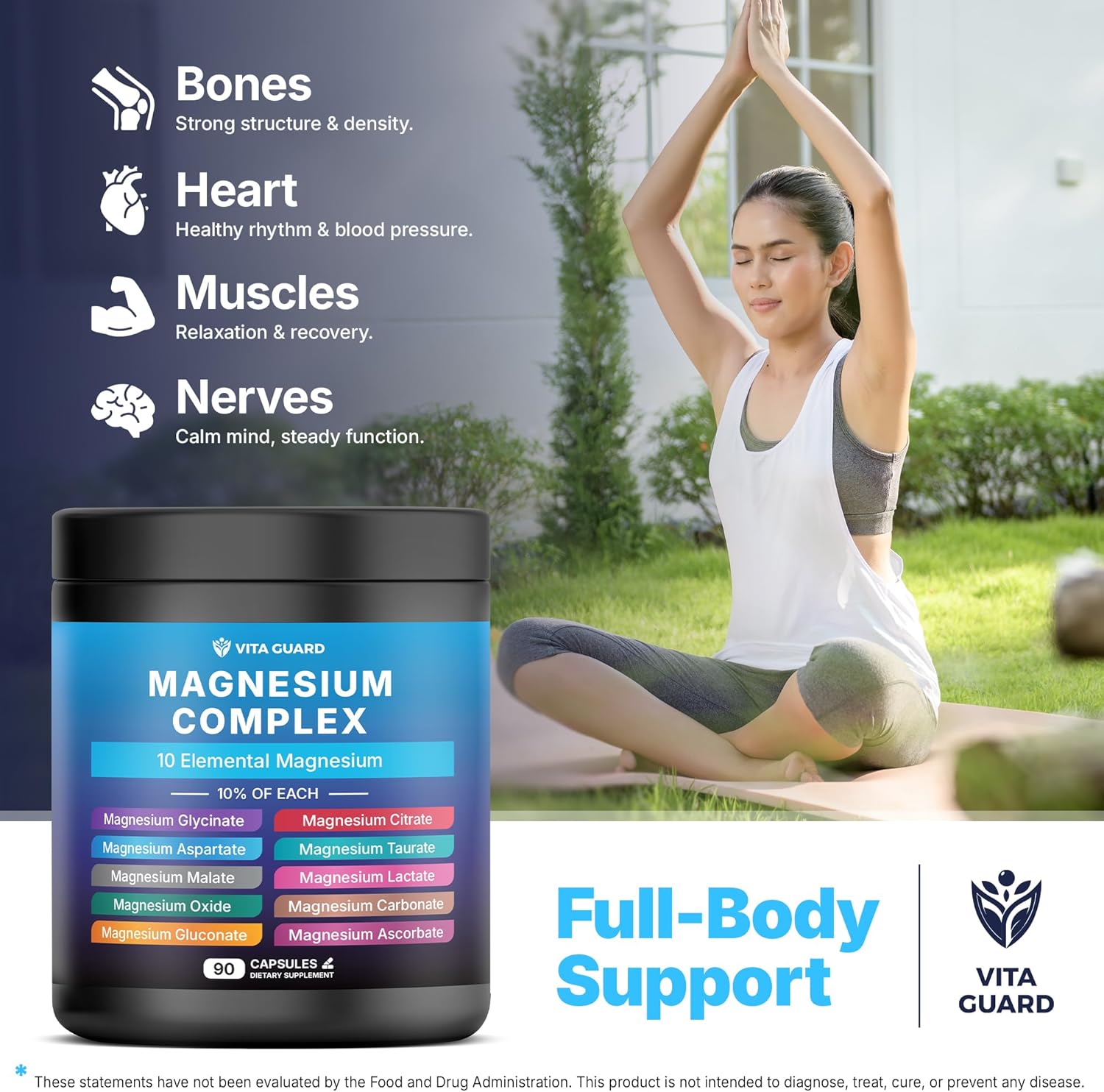 Magnesium Complex 1480mg – 10-in-1 with Glycinate, Citrate, Malate & More – High Absorption – Sleep, Muscle, Nerve & Heart Support – 90 Vegan Capsules – Non-GMO, Gluten-Free, No Sugar